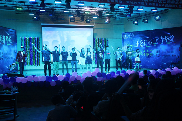 晚会初始,Once女子乐队一首《温柔》,一首《一万次悲伤》,勾起在场青春儿女的心,点燃全场。随后朱建国书记发表晚会致辞,首先恭祝各位毕业生顺利毕业,再次朱书记对各位毕业生提出了几点希望:一、作为一名接受过高等教育的大学毕业生,在未来的生活和工作中,我们要积极主动,奋发图强,既要展现我们的年轻活力,又要有效的运用学到的科学知识,还有保持在学校的优良作风,努力将自己打造成为一个复合型人才;二、未来的人生之路是漫长的,大学里学习的知识是有限的,终身学习是当今社会的必然要求,要学会调整员工时代的书本知识和思维方法,去应对复杂纷繁的社会变化,努力成为生活的强者、人生的赢家。