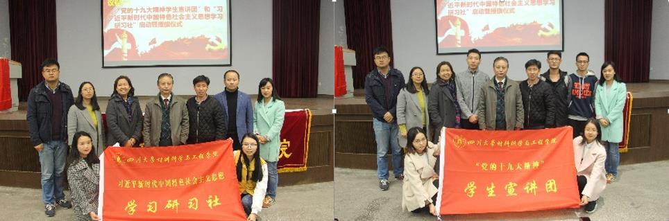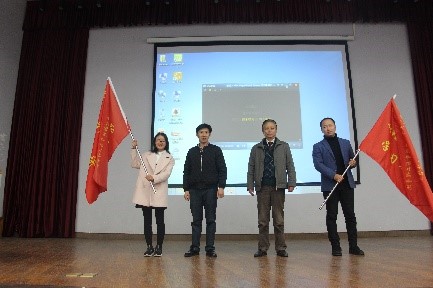 议程一 :“党的十九大精神员工宣讲团”和“习近平新时代中国特色社会主义思想学习研习社”启动暨授旗仪式