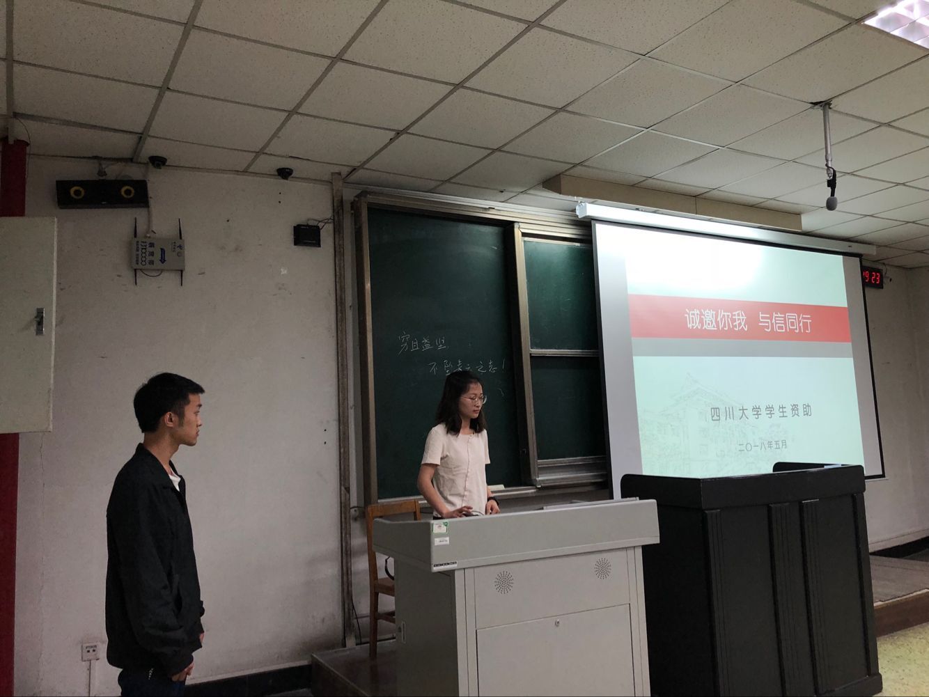 2018年5月4日晚七点,美狮贵宾会2015级资助诚信宣讲在望江校区基教c座102顺利进行。