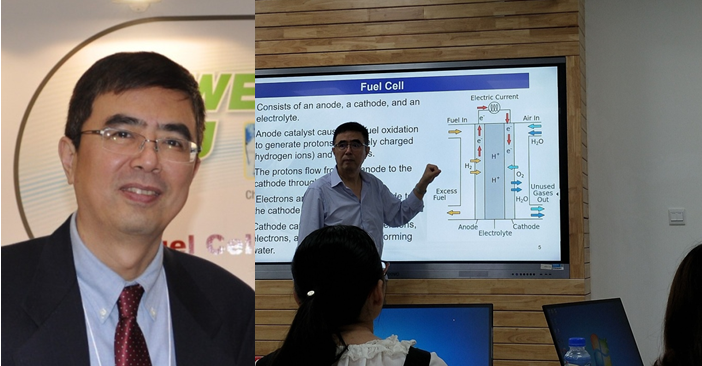 7月9日,国际知名燃料电池专家,美国康涅狄格大学博士,曾任美国大型公司主要技术负责人,长期在海外从事氢能源及燃料电池的设计与研发工作,全球首位燃料电池车开发的华裔科学家,现任广东泰罗斯汽车动力系统有限公司CTO张锐明博士(美籍)来访美狮贵宾会并讲授校外专家课程。2016级新能源材料与器件专业36名同学及1名来自历史学院的同学参与了此次课程。