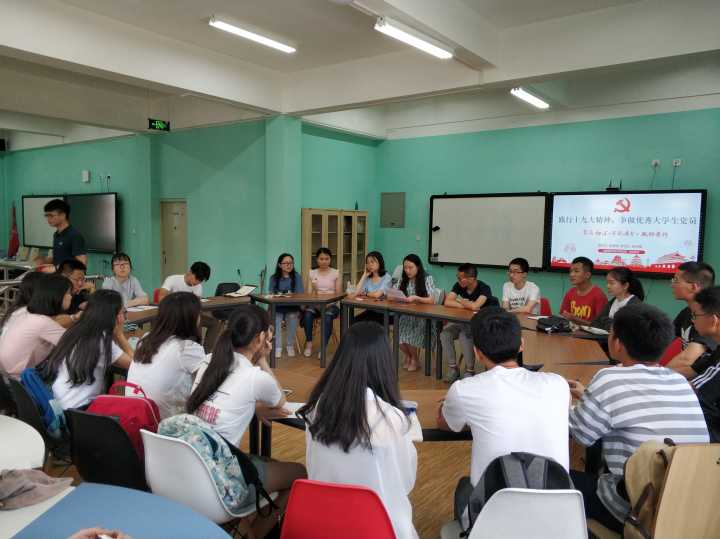 2018年6月8日美狮贵宾会望江本科党支部的同学,到江安校区开展了一次弘扬十九大精神,树立党员先锋模范带头作用的组织生活。