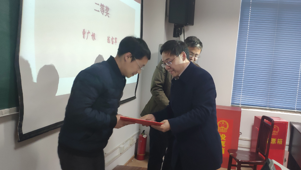 经理刘颖为获得二等奖的曾广根、陈宝军两位老师颁奖。