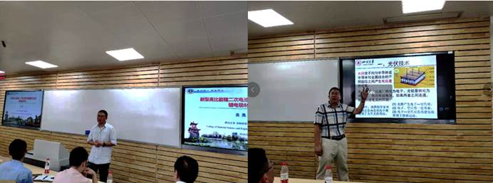接下来专家报告环节中,由吴昊、曾广根两位青年教师先后为同学们进行分享。吴昊研究员介绍了新型高比能锂二次电池的发展前沿与关键电池材料等科研成果,包括课题组当前的科研项目和组内人员等;曾广根副教授用幽默风趣的话语旁征博引地向营员们介绍了光伏器件的发展现状和部分实验成果。此次报告进一步加深了同学们对新能源材料以及太阳能电池的认识,并且对公司的部分科研内容有了大致的了解。