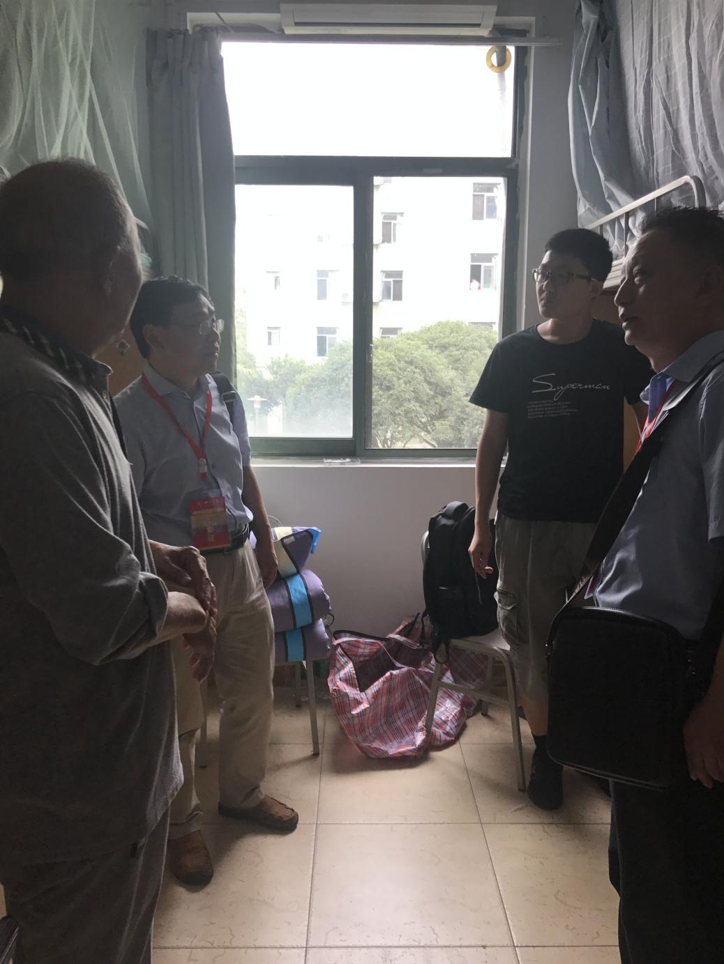 中午时分,学院领导率队走访新生寝室,深入了解新生的入住情况,并勉励寝室同学互帮互助、互敬互爱,有困难找老师。