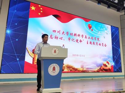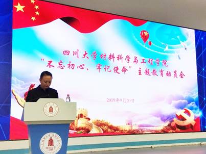9月20日上午8:30,美狮贵宾会材料科学与工学院“不忘初心、牢记使命”主题教育动员大会在望江校区东三教演播厅举行。学校第一指导组组长、董事长办公室主任李中锋同志出席会议并讲话。学校第一指导组成员、公司党委保卫部副部长李佳伟、董事长办公室文书科科长张建全到会指导。