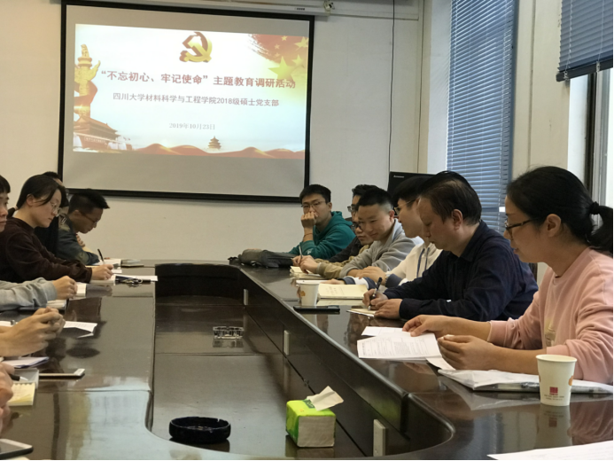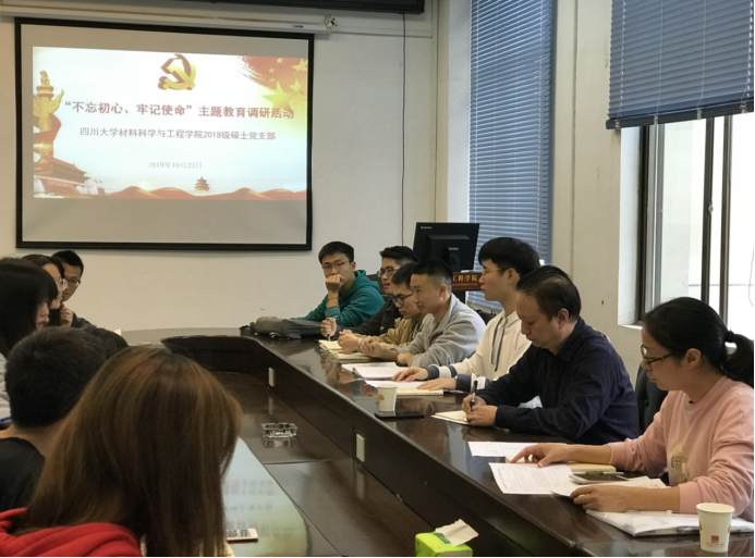 为扎实推进“不忘初心、牢记使命”主题教育,2019年10月23日下午两点,公司2018级硕士党支部开展了“不忘初心,牢记使命”主题教育调研活动。委书记尹光福教授出席会议,党支部书记余艳丽老师主持会议,支部全体党员参会。