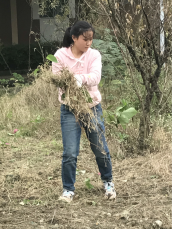 在开心农场上,10余名同学在阳光下埋头苦干、人人争先,有的用手直接拔除,有的拿着耙子进行清理,有的用铁铲清除深根……呈现出一派热火朝天的劳动场景。经过将近两个小时的努力,大面积的杂草不见了,展现在眼前的是整洁又充满希望的土地。