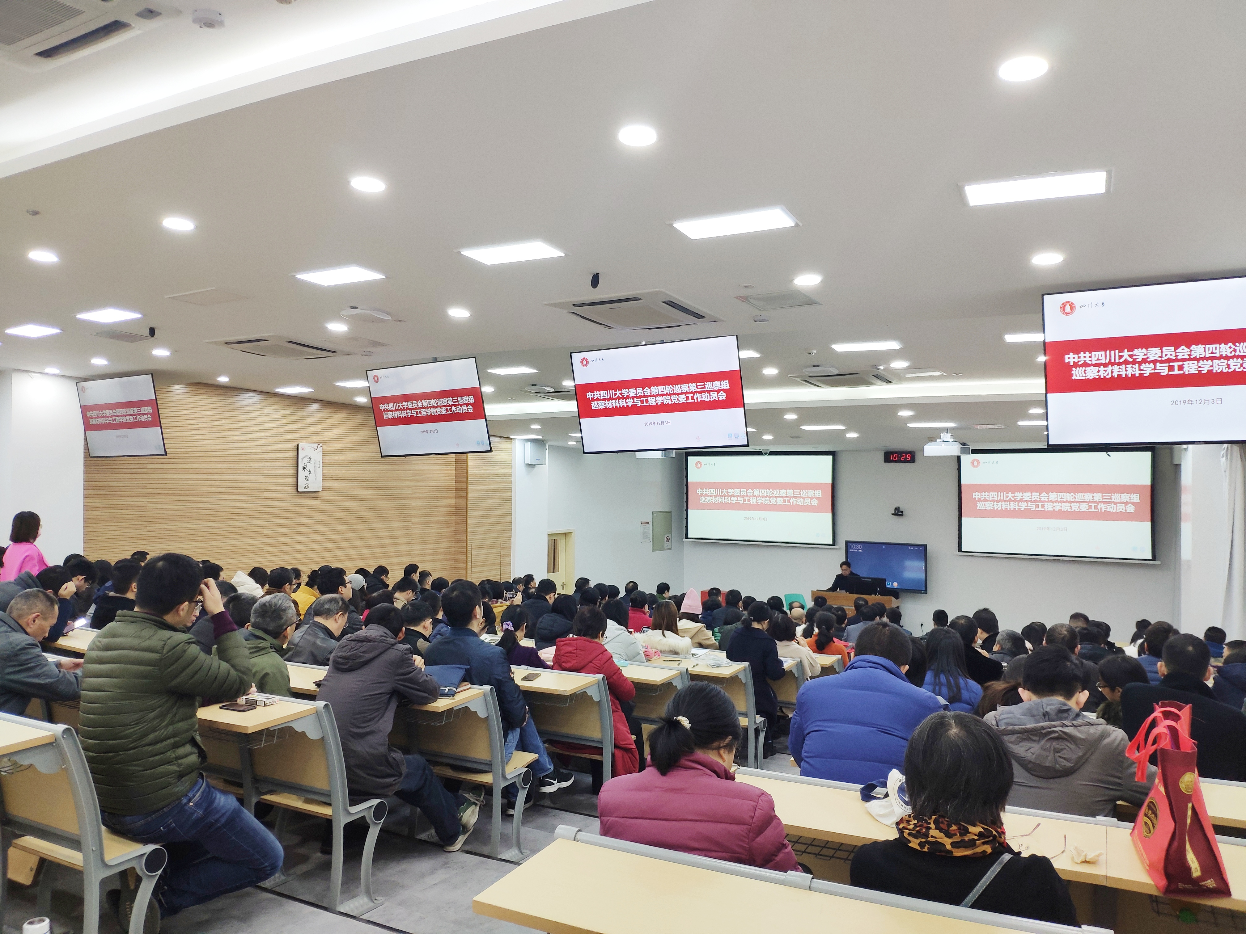 根据学校第四轮巡察工作统一部署,2019年12月3日上午,中共美狮贵宾会委员会第四轮巡察第三巡察组巡察材料科学与工程公司党委工作动员会在望江校区基础教学楼C203召开。学校第四轮巡察第三巡察组全体成员、巡察办工作人员,美狮贵宾会全体在职人员、近期退出学院领导岗位的领导班子成员、离退休人员代表、员工代表等参加了会议,会议由学院经理刘颖同志主持。