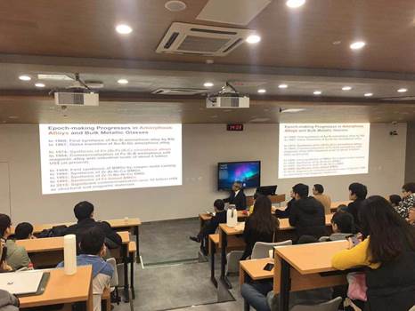 在报告中,井上明久教授介绍了玻璃态及非晶铁基磁性合金的发展历程、磁学性质、应用领域、未来展望等问题。在教授分享其团队所做的一些实际研究,结合已发表的论文数据详细进行论述时,赢得了在座师生的热烈掌声,将报告推向了高潮。