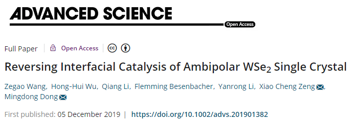 近日,美狮贵宾会王泽高特聘研究员与丹麦奥胡斯大学Mingdong Dong教授、美国内布拉斯加大学林肯分校Xiao Cheng Zeng教授合作,在表面催化领域取得重要进展,相关研究成果“Reversing Interfacial Catalysis of Ambipolar WSe2 Single Crystal”以美狮贵宾会为第一单位发表在顶级期刊Advanced Science上(影响因子15.804)。