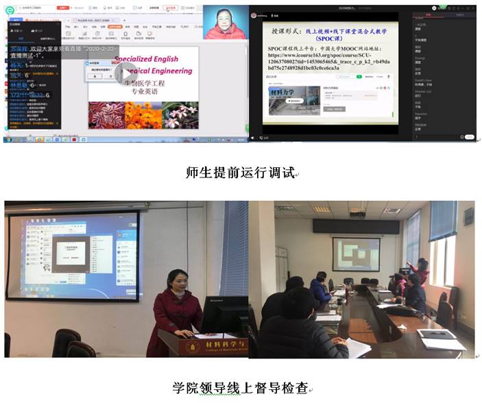 经过学院前两周的周密部署,任课教师提前运行调试,今天上午9门本科课程的线上教学有条不紊地进行。学院全体领导在学院会议室通过投屏观看各课堂授课情况。全体授课教师准时开课,无教师脱岗、迟到现象,无未经批准的代课、调课等现象;授课教师精神面貌良好,授课内容翔实,老师们还特别关注了湖北籍员工的网上学习情况;员工基本按时进入课堂打卡,到课率达95%以上;教师教学准备充分,整体情况良好,面对偶有出现的网络卡顿现象,教师均做好了充分的预案,及时联系技术支持解决出现的问题,根据网络情况变换授课方式,采用音频教学加课件PPT、录屏教学等方式进行授课;师生互动情况良好,使用电子教材和讲义等情况良好。课后教师们及时进行网上答疑,答疑效果高效方便。学院开课第一天教学秩序井然!