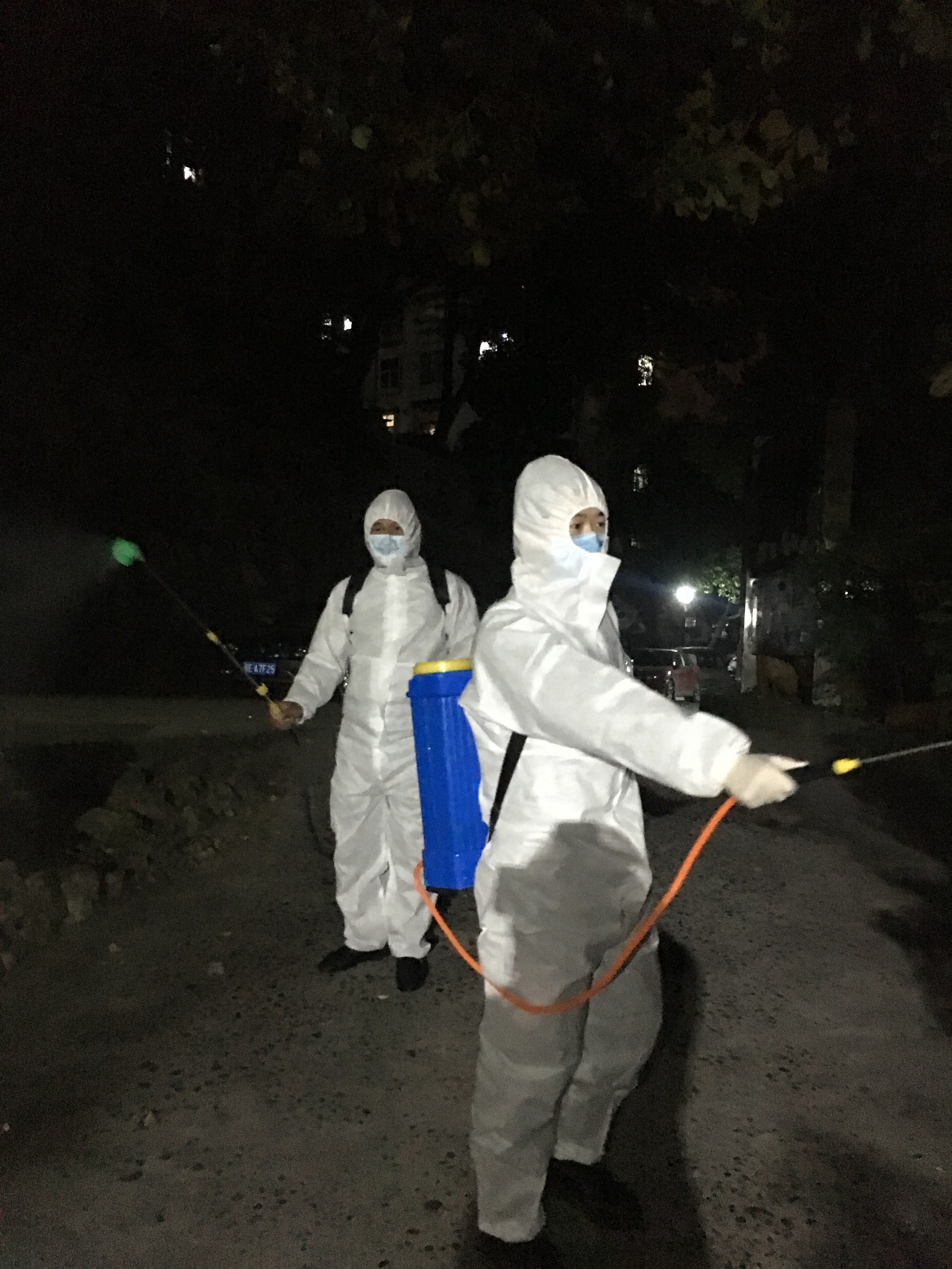 2017级研究生杨方民,疫情期间一直在湖北宜昌。在认真居家学习之余,他也积极参与社区防疫工作,主动报名志愿服务,参与对所在社区主干道路及居民生活区喷洒消毒药水等工作,为疫情防治工作出一份力。