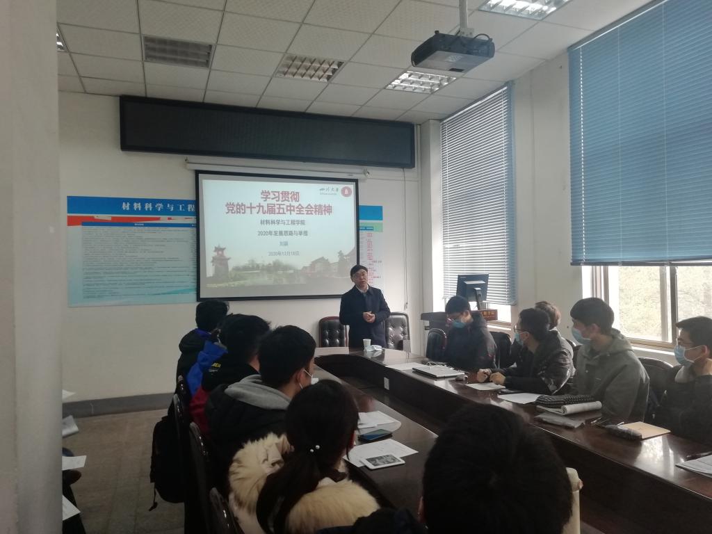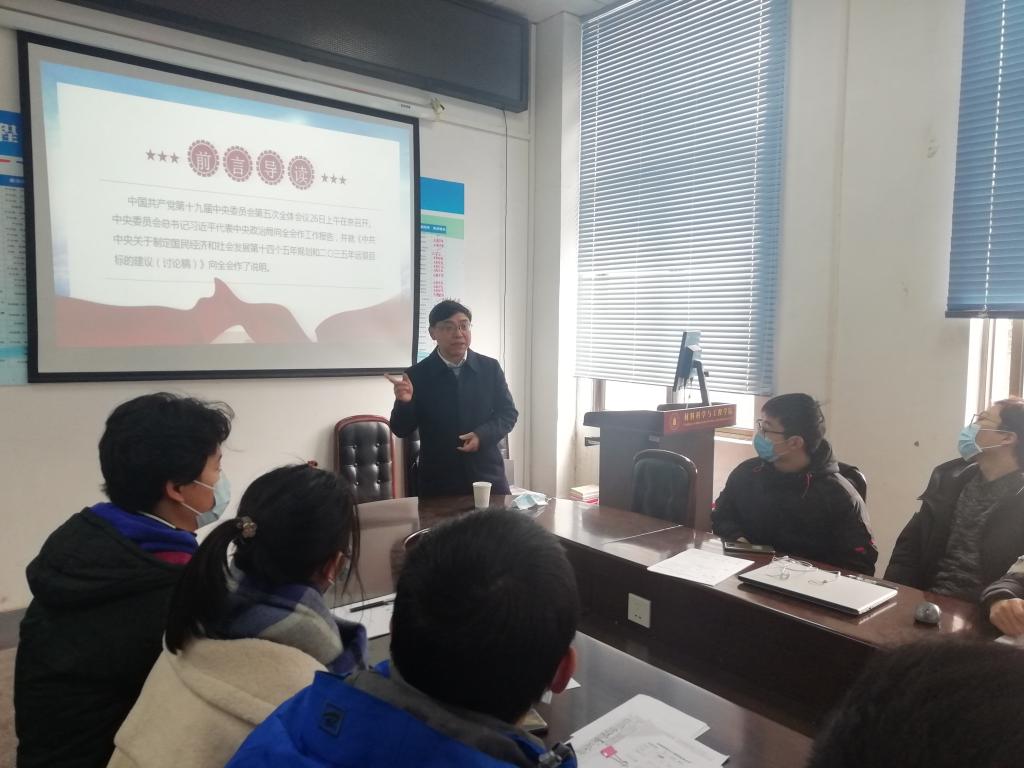 2020年12月18日,刘颖经理为全体本科生党员讲授党课,主题为《学习贯彻党的十九届五中全会精神》。