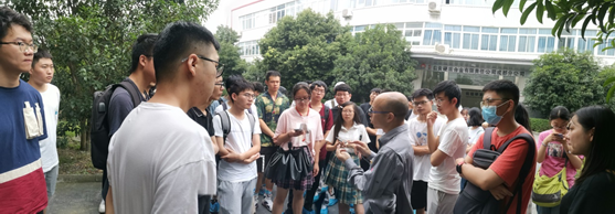 7月4日,同学们来到成都中建材光电材料有限公司,公司副总经理蒋猛博士(公司2012级博士)、技术中心总工程师唐茜(公司2005级硕士)、实验室主任曾静(公司2012级硕士)、生产部主管罗润(公司2013级硕士)分别向同学们介绍了太阳能电池行业的发展概况,并从固体物理中的能带结构、半导体物理中PN节的基本原理出发,向同学们详细讲解了了太阳能电池材料的发电原理,并带领同学深入车间观看具体生产过程。