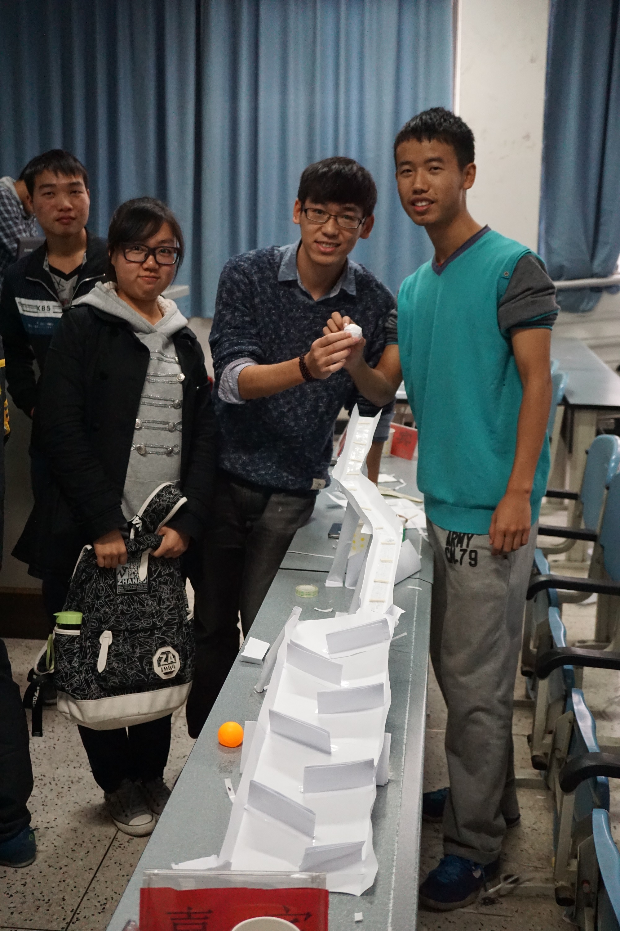 本次活动讲究团队合作精神,通过同学之间的配合增进了同学之间的友谊。在趣味的比赛中更蕴含了深奥的科学道理,同学可通过自身的物理学知识以及对结构的掌握,使小球尽可能的长时间运动。通过本次活动,同学们不仅增加动手实践能力,还丰富课余文化生活。让我们明年的比赛会有更令人激动地结果。